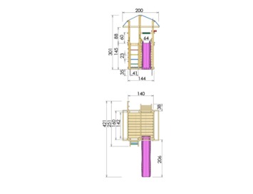 - Oppervlakte van het speeltoestel met glijbaan: 421x200 cm