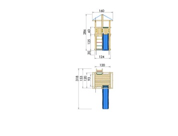 - Oppervlakte van het speeltoestel met glijbaan: 318x160 cm