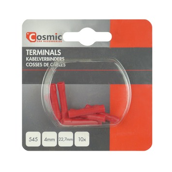 Kabelverbinders 545 10 stuks zijn handige kabelverbinders, ook wel kabelschoenen genoemd, waarmee u eenvoudig elektrische aansluitingen kunt maken. De kabelverbinders worden in een set van 10 stuks geleverd en hebben een afmeting van 4mmx22,7mm. Kabelschoenen zijn connectors waarmee u een kabel kunt verbinden met een vlak aansluitstuk. De kwalitatief goede kabelverbinders 545 10 stuks zijn gemaakt van hoogwaardig materiaal en verkrijgbaar in de kleur rood. De kabelschoenen kunt u bevestigen met behulp van een kabelschoentang. Kortom, met kabelverbinders 545 10 stuks maakt u de juiste verbinding.