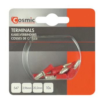 Kabelverbinders 547 10 stuks zijn handige kabelverbinders, ook wel kabelschoenen genoemd, waarmee u eenvoudig elektrische aansluitingen kunt maken. De kabelverbinders worden in een set van 10 stuks geleverd en hebben een afmeting van 3,96mmx20,2mm. Kabelschoenen zijn connectors waarmee u een kabel kunt verbinden met een vlak aansluitstuk. De kwalitatief goede kabelverbinders 547 10 stuks zijn gemaakt van hoogwaardig materiaal en verkrijgbaar in de kleur rood. De kabelschoenen kunt u bevestigen met behulp van een kabelschoentang. Met kabelverbinders 547 10 stuks maakt u de juiste verbinding.