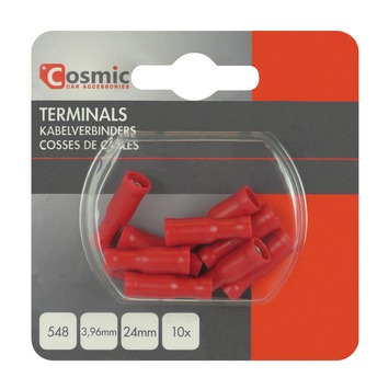 Kabelverbinders 548 10 stuks zijn handige kabelverbinders, ook wel kabelschoenen genoemd, waarmee u eenvoudig elektrische aansluitingen kunt maken. De kabelverbinders worden in een set van 10 stuks geleverd en hebben een afmeting van 3,96mmx24mm. Kabelschoenen zijn connectors waarmee u een kabel kunt verbinden met een vlak aansluitstuk. De kwalitatief goede kabelverbinders 548 10 stuks zijn gemaakt van hoogwaardig materiaal en verkrijgbaar in de kleur rood. De kabelschoenen kunt u bevestigen met behulp van een kabelschoentang. Kortom, met kabelverbinders 548 10 stuks maakt u de juiste verbinding.
