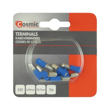Kabelverbinders 550 10 stuks zijn handige kabelverbinders, ook wel kabelschoenen genoemd, waarmee u eenvoudig elektrische aansluitingen kunt maken. De kabelverbinders worden in een set van 10 stuks geleverd en hebben een afmeting van 4,96mmx20,7mm. Kabelschoenen zijn connectors waarmee u een kabel met een vlak aansluitstuk kunt verbinden. De kwalitatief goede kabelverbinders 550 10 stuks zijn gemaakt van hoogwaardig materiaal en verkrijgbaar in de kleur blauw. De kabelschoenen kunt u bevestigen met behulp van een kabelschoentang. Met kabelverbinders 550 10 stuks maakt u de juiste verbinding.