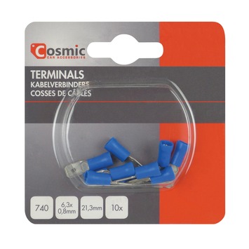 Kabelverbinders 740 10 stuks zijn handige kabelverbinders, ook wel kabelschoenen genoemd, waarmee u eenvoudig elektrische aansluitingen kunt maken. De kabelverbinders worden in een set van 10 stuks geleverd en hebben een afmeting van 6,3mmx0,8mmx21,3. Kabelschoenen zijn connectors waarmee u een kabel met een vlak aansluitstuk kunt verbinden. De kwalitatief goede kabelverbinders 740 10 stuks zijn gemaakt van hoogwaardig materiaal en verkrijgbaar in de kleur blauw. De kabelschoenen kunt u bevestigen met behulp van een kabelschoentang. Met kabelverbinders 740 10 stuks maakt u de juiste verbinding.