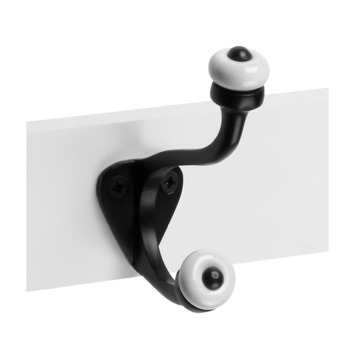 Deze sfeervolle kapstok met zwarte ijzeren haken en wit houten paneel is een plaatje om te zien. De kapstok is voorzien van 3 haken waarvan 2 haken uit twee delen bestaan waar jassen, tassen en dergelijke aangehangen kunnen worden.