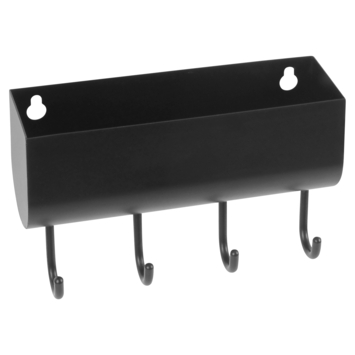 Op zoek naar een zwarte kapstok? Deze kapstok heeft 4 haken. De kapstok is gemaakt van metaal met een poedercoating. Deze kapstok kan gebruikt worden in diverse ruimtes zoals de hal, badkamer en keuken. De zwarte kapstok wordt geleverd met schroeven. De kapstok is super makkelijk om op te hangen.