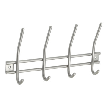 Op zoek naar een RVS-look kapstok? Deze kapstok heeft 4 haken. De kapstok is gemaakt van metaal en heeft een geborstelde afwerking. Deze kapstok kan gebruikt worden in diverse ruimtes zoals de hal, badkamer en keuken. Deze kapstok heeft een RVS-kleur en wordt geleverd met schroeven en pluggen. Het ophangen van de kapstok is eenvoudig.
