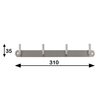 Op zoek naar een RVS-look kapstok? Deze kapstok is van het merk Novidade en heeft 4 haken. De kapstok is gemaakt van metaal en heeft een geborstelde afwerking. Deze kapstok kan gebruikt worden in diverse ruimtes zoals de hal, badkamer en keuken. Deze kapstok heeft een RVS-kleur en wordt geleverd met schroeven en pluggen. De kapstok is makkelijk op te hangen.