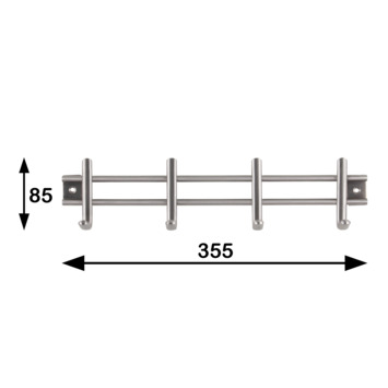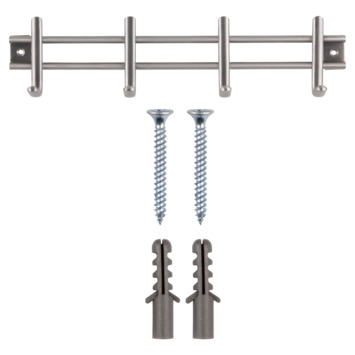 Op zoek naar een nieuwe kapstok? Deze kapstok van het merk novidade heeft 4 haken. De kapstok is gemaakt van geborsteld metaal en heeft een RVS kleur. De kapstok kan gebruikt worden in verchillende ruimtes zoals in de keuken, hal of badkamer. De ophanghaak is zeer eenvoudig op te hangen en wordt inclusief schroeven geleverd.