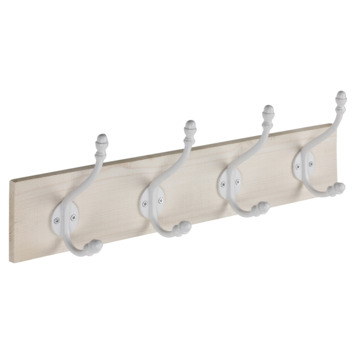 Op zoek naar een houten kapstok? Deze kapstok heeft 4 haken. Deze kapstok is ideaal om te gebruiken in de hal. De witte kapstok wordt geleverd zonder bevestigingsmateriaal. Desondanks is het eenvoudig om de kapstok op te hangen.