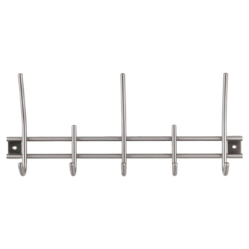 Op zoek naar een RVS-look kapstok? Deze kapstok is van het merk Novidade en heeft 5 haken .De kapstok is gemaakt van metaal en heeft een geborstelde afwerking. Deze kapstok kan gebruikt worden in diverse ruimtes zoals de hal, badkamer en keuken. Deze kapstok heeft een RVS-kleur en wordt geleverd met schroeven en pluggen. Het ophangen van de kapstok is eenvoudig.