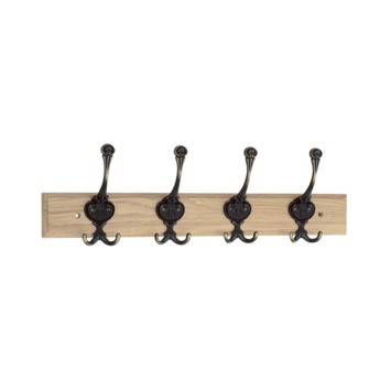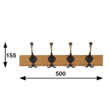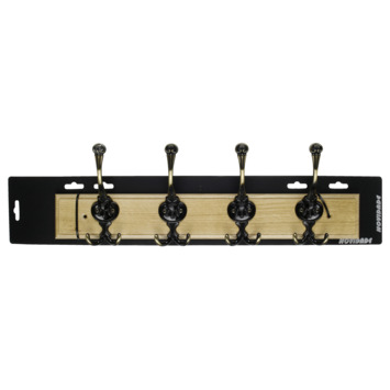 Deze klassieke kapstok is voorzien van 8 haken bevestigd op een houten frame.