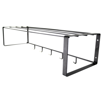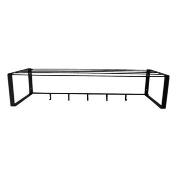 Kapstok Ria is een wandkapstok met 5 haken en een hoedeplank. De kapstok gemaakt van zwart metaal voor een strakke uitstraling