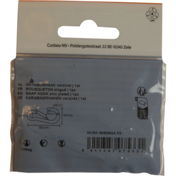Snel een verbinding maken? Kies dan voor de karabijnhaak 80mm verzinkt. Een karabijnhaak is dankzij het scharnierende deel geschikt om snel en eenvoudig dingen met elkaar te verbinden. Karabijnhaken komen goed van pas als je iets moet zekeren of op een eenvoudige manier aan elkaar moet bevestigen. Deze haak is gemaakt van verzinkt metaal waardoor corrosie wordt tegengegaan. Op deze manier gaat je haak langer mee en kan hij ook buitenshuis worden gebruikt. Kortom: eenvoudige verbindingen maak je met deze karabijnhaak.