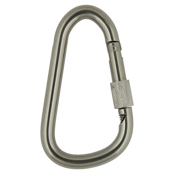 De karabijnhaak triangel 10x115mm is een karabijnhaak in het model triangel met de afmeting 10 bij 115 millimeter. De karabijnhaak is gemaakt van het hoogwaardige roestvrijstaal 316 en is daardoor goed bestand tegen zowel zoet als zout water. De karabijnhaak heeft een schroefborging waardoor deze niet kan openen om het moment dat de schroefborging vast gedraaid is. Een veilige werkbelasting voor deze haak is maximaal 540 kilogram, de breeklast is 2720 deca Newton (daN), dit is ongeveer gelijk aan 2720 kilogram. Dat maakt de haak geschikt voor de meeste bevestigingsklussen.