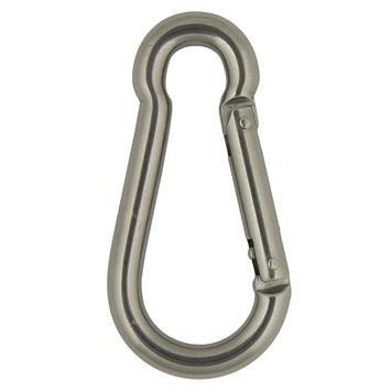 De karabijnhaak open oog 10x100mm schuin is een karabijnhaak met een open oog in de afmeting 10 bij 100 millimeter. Deze karabijnhaak gaat schuiner open dan andere karabijnhaken, hierdoor ontstaat een groter opening. De karabijnhaak is gemaakt van het hoogwaardige roestvrijstaal 316.