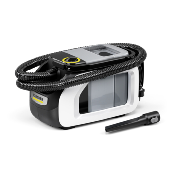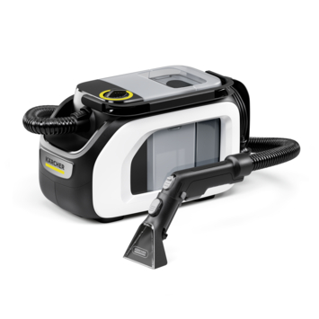 De set bevat de SE 3 Compact, een sproeikop voor wasbekleding, een waskussenzuigmond en 100 ml reinigingsmiddel RM 519. Met de Kärcher SE 3 haalt u een praktische oplossing in huis voor een schone en hygiënische omgeving.