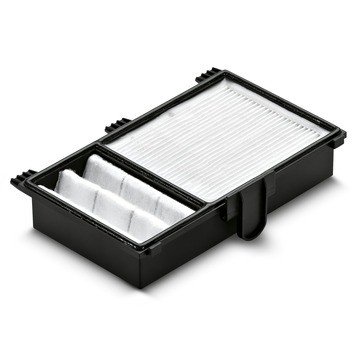 De Kärcher HEPA 13 high-performance filter met geavanceerde afdichting voor het betrouwbaar afvangen van pollen, schimmelsporen, bacteriën en mijten. 99,9% van de deeltjes groter dan 0,3µ wordt afgevangen.