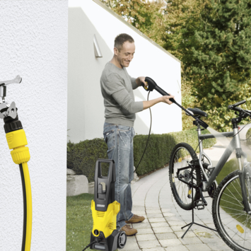 De Kärcher hogedrukreiniger K3 Car & Home is een complete machine met alles om onder andere je huis, tuin en auto mee schoon te maken. Maar ook fietsen, tuinhekken, tuinmeubelen, motorfietsen. De waterdruk kan eenvoudig worden aangepast aan het te reinigen oppervlak simpelweg door aan de Vario Power Spray lans (VPS) te draaien. Hierdoor heb je bij elke klus de perfecte controle. De machine heeft een maximale waterdruk van 120 bar en een wateropbrengst van 380 liter water per uur. De vuilfrees met roterende puntstraal verwijdert zelfs het meest hardnekkige vuil. De bij gevoegde T-racer 150 is ideaal om grotere oppervlakken mee schoon te maken. De kabel, slang en andere toebehoren accessoires zijn netjes op het apparaat op te hangen. En door de wielen eronder kan de reiniger gemakkelijk verplaatsen. De pomp van de hogedrukreiniger is zelf aanzuigend. De Kärcher hogedrukreiniger K3 Car & Home wordt geleverd met: Varia Power spuitlans, vuilfrees, reinigingsmiddel, wasborstel en schuimsproeier. Voor een veelzijdige hogedrukreiniger om je alles rondom je huis en auto brandschoon te maken gebruik je de Kärcher hogedrukreiniger K3 Car & Home.