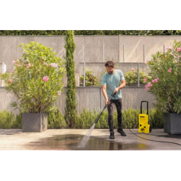 De Kärcher K4 Water Cooled Motor hogedrukreiniger is geschikt voor het reinigen van terrassen, tuinmeubelen, auto's en caravans. Dankzij de 6 meter lange hogedrukslang en het 5 meter lange netsnoer heb je een bereik van 11 meter, zodat je ook moeilijk bereikbare plekken eenvoudig schoonmaakt. De telescopische handgreep en het Quick Connect-systeem zorgen ervoor dat je snel en veilig aan de slag kunt.