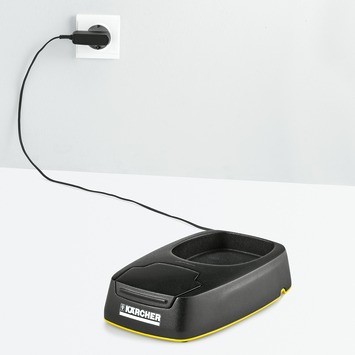 Het moderne Kärcher laadstation voor de Window Vac WV 5 kan zowel de accu alleen als de volledige Kärcher Window Vac laden en opslaan.