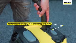 De Kärcher nat- en droogzuiger WD 3 heeft een extreem hoge zuigkracht, maar is zeer energiezuinig. Hierdoor kunt u glas, gruis en water opzuigen en is vuil verleden tijd.