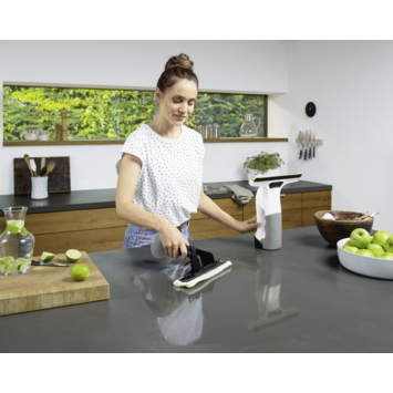 De Kärcher ruitenwasserset Window Vac 6 Plus is ideaal om in een handomdraai schone en streeploze ramen te krijgen. Dit toestel heeft een unieke zuigstrip waarmee je een groot raamoppervlak in één beweging kunt droogtrekken. Dankzij de krachtige (meegeleverde) accu kun je tot 100 minuten werken op één acculading. De oplaadtijd van de accu bedraagt 170 minuten. De ergonomische handgreep zorgt voor een aangenaam gebruik. Deze set bevat naast de ruitenwasser ook de volgende onderdelen: batterijlader, sproeifles, glasreiniger, zuigmond en microvezeldoek.
