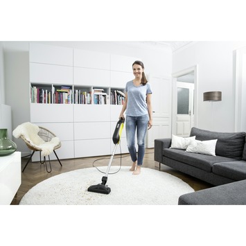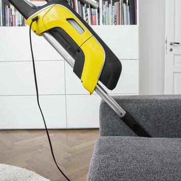 De superieure VC 5 van Kärcher toont aan dat een krachtige stofzuiger niet groot hoeft te zijn. De compacte stofzuiger onderscheidt zich ondanks het kleine formaat door een unieke reinigingskracht en kan de vergelijking met grote sledestofzuigers gemakkelijk aan. Dankzij het gepatenteerde driedubbele telescopische systeem kan de zuiger half zo groot worden gemaakt. Gewoon op de knop drukken en inschuiven: de VC 5 is een van de compactste stofzuigers ter wereld waarvoor ook in de kleinste woning plaats is. De grote zuigkracht heeft de VC te danken aan de schakelbare Kärcher zuigmond voor droog zuigen met flexibel gewricht. De zuigmond is speciaal ontworpen voor dit apparaat. Het robuuste ontwerp en de speciale geometrie van de zool leveren maximale zuigkracht bij een laag energieverbruik. En het energie-label bevestigt de uitstekende reinigingsresultaten van de VC 5 op alle harde vloeren en tapijten. Een ander pluspunt is het zakloze filtersysteem met geïntegreerde reiniging dat de aankoop van dure filterzakken overbodig maakt. De filtercassette kan eenvoudig worden verwijderd waarna het filter snel kan worden geleegd. De VC 5 is een compacte krachtpatser die een uitstekende zuigprestatie levert.