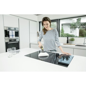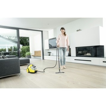 De Kärcher stoomreiniger SC 5 easyfix is een veelzijdig apparaat die jouw huis helemaal schoon maakt. De stoomreiniger is erg handig om in huis te hebben, het kan namelijk op veel verschillende ondergronden worden gebruikt. Zo kan die worden gebruikt op een afzuigkap, parket, laminaat, kookplaten, PVC vloeren, sanitair en tegels. Het apparaat is de krachtigste in zijn klasse met 4,2 bar en kan dan ook met gemak wel 99,9% van alle huishoudelijke bacteriën verwijderen. De druk is zelf te bepalen in 4 verschillende standen, waardoor je op elk oppervlak een goed resultaat krijgt. De stoomreiniger kan met zijn vele accessoires veel klussen doen. Zo kan het vet verwijderen, schimmel verwijderen en voegen reinigen. Met de speciale VapoHydo functie kan je in combinatie met stoom en heet water veel vervuiling weghalen. Je hoeft dan ook geen chemicaliën te gebruiken want vuil wordt snel en effectief weg gehaald door de stoom. Om je vloeren te reinigen gebruik je de bodemdoek van microvezel die eenvoudig kan worden vastgemaakt. Het afneembare waterreservoir is altijd eenvoudig te vullen zodat je kan werken zonder onderbrekingen. Met de snoerlengt van 6 meter ben je erg wendbaar. Door de kinderbeveiliging kan de stoomreiniger zonder problemen worden opgeborgen. De Kärcher stoomreiniger wordt geleverd met een stoomslang met pistool, veiligheidsventiel, badstofovertrek voor handsproeier, handsproeier, vloerdoek, puntstraalsproeier, vloerzuigmond en een ronde borstel. De reiniger heeft een opbergruimte voor alle accessoires. Kortom, de Kärcher stoomreiniger SC 5 easyfix is een krachtige machine waarmee je alles in huis met gemak en goed resultaat schoon maakt.
