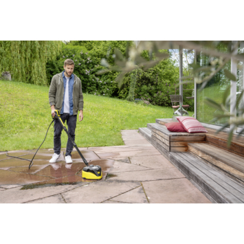 De Kärcher T-Racer T 7 Plus terrasreiniger is een ideaal hulpmiddel voor het reinigen van buitenoppervlakken zonder te spatten. De roterende arm verwijderd vuil van grote oppervlakken en werkt tijd besparend ten opzichte van het schoonmaken met een spuitlans. De toevoeging van het mondstuk zorgt voor ook een effectieve reiniging in hoeken en randen. En dankzij het geïntegreerde spoelmondstuk spoelt het vuil gemakkelijk weg van het gereinigde oppervlak. Harde oppervlakken, zoals steen en beton, en meer delicate oppervlakken, zoals hout, kunnen beide worden gereinigd door de afstand tussen het mondstuk en het te reinigen oppervlak aan te passen. Dankzij het hovercraft-effect is de T-Racer bijzonder gemakkelijk te manoeuvreren. De verschillende functies worden simpel geselecteerd met behulp van de voetschakelaar. Ook verticale oppervlakken, zoals garagedeuren, kunnen gemakkelijk worden gereinigd dankzij de praktische handgreep. Geschikt voor Kärcher hogedrukreinigers van K 4 tot K 7.