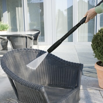 De Kärcher vario power spuitlans VP 180 is ideaal voor het reinigen van kleinere oppervlakten rondom het huis en tuin, zoals muren, paden, schuttingen en voertuigen. De VP 180 vario power lans is traploos verstelbaar, door aan de spuitlans te draaien, van lagedrukstraal met reinigingsmiddel tot hogedrukstraal. Deze vario power lans is geschikt voor de Kärcher hogedrukreinigers klasse K7.