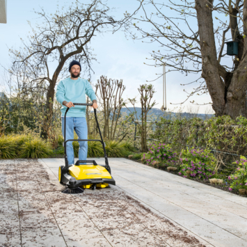 Of het nu lente, zomer, herfst of winter is - de nieuwe S 6 veegmachine van Kärcher is geschikt voor het hele jaar door schoonmaken rond huis en in de tuin. Het is effectief: dankzij de krachtige rolborstel, zijborstel en een veegbreedte van in totaal 670 mm veegt het apparaat moeiteloos gebieden tot 2500 m² in een uur. Het is ergonomisch: de duwhandgreep kan worden ingesteld op 2 posities zonder te bukken en kan optimaal worden aangepast aan de hoogte van de gebruiker. En het is schoon: het afval belandt direct in de 38 liter grote afvalcontainer die geen vuile handen veroorzaakt bij het legen. Een ander pluspunt is de extra hoogte-instelling van de zijborstel, waardoor een aanpassing van de contactdruk met het afval mogelijk is - en dus optimale veegresultaten. De S 6 kan ook volledig worden ingeklapt dankzij een voetplaat aan het frame en ruimtebesparend worden opgeborgen. De veegmachine is in een mum van tijd klaar voor gebruik dankzij de gereedschaploze installatie van de zijborstel.