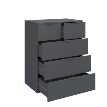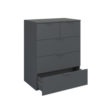 De ladekast James is een praktische en mooie ladekast die past in elk intereur. De FSC gecertificeerde kast bestaat uit 5 lades waardoor er genoeg opbergruimte is voor al jouw spullen. Met zijn neutrale grijze kleur is hij makkelijk te combineren met allerlei andere meubelen. De afmetingen van de kast zijn (hxbxd) 100x80x48cm. Genoeg ruimte om spullen in kwijt te kunnen. Ook leuk om te combineren met de andere kasten uit de James serie.