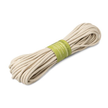 Katoen is een zachte natuurvezel in een gebroken witte kleur. Het katoen touw is 16 stremgem gevlochten met een diameter van 4mm en een lengte van 20mtr in een bundel.