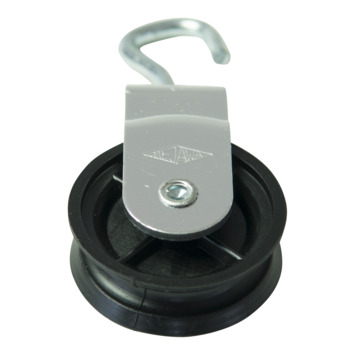 Een katrol kun je gebruiken om, met beperkte kracht, relatief zware lasten mee te verplaatsen. Het wiel heeft een diameter van 40 mm en een groef van 4 mm. Aan de bovenzijde zit een haak waar je de katrol aan op kunt hangen. Deze haak is draaibaar dus je kunt alle kanten op. De haak is geschikt voor gebruik binnenshuis en de maximale belasting is 10 kg .