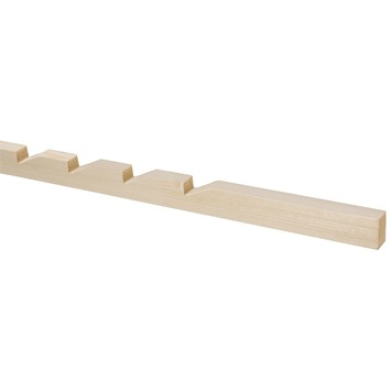 Keeplatten zijn voorzien van inkepingen waarop je kastplanken kunt leggen. Door deze inkepingen ontstaat er een stevige en goede verbinding. Keeplatten kun je ook gebruiken om bijvoorbeeld kastjes in de woonkamer of keuken aan te bevestigen. Deze keeplat vuren 18x29 mm, lengte 210cm is gemaakt van vuren, een lichte en sterke houtsoort en daarom in Nederland het meestgebruikte hout voor verschillende doeleinden en dus breed toepasbaar. Vurenhout is vrij zacht, zodat je er met gemak een spijker inslaat. Bovendien is de keeplat geschaafd, zodat het mooi glad is afgewerkt en je geen splinters in je vingers krijgt. Kortom: een ideaal stuk hout als drager van kastplanken of hangende kastjes.