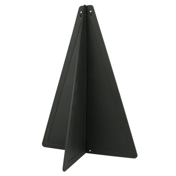 De kegel bestaat uit twee delen die in elkaar geschoven moeten worden. Deze plat opvouwbare signaalkegel neemt niet zoveel plaats in beslag en is daardoor makkelijk op te bergen.
