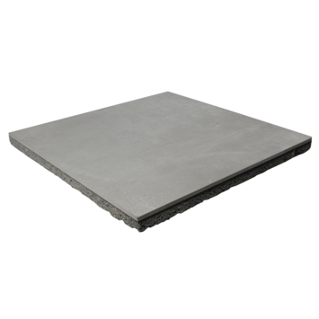 Deze keramiek op beton terrastegel vormt een unieke hybride combinatie; een 1 cm dikke keramische tegel op een 3 cm dikke betonnen onderlaag. Deze keramische boventegel is onlosmakelijk verbonden met een waterdoorlatende betonnen ‘geo’ onderlaag met geïntegreerde afstandshouders.