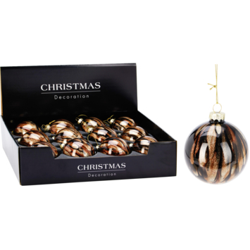 Kerstbal glas gemengd bruin design Ø 8 cm per stuk1.99