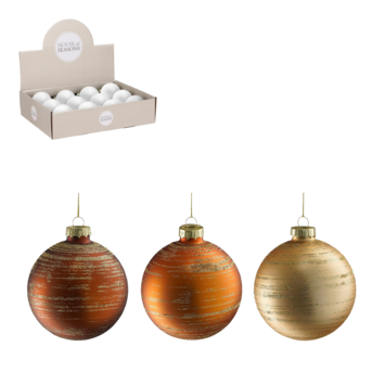 Versier je kerstboom met deze prachtige glazen kerstballen. Verkrijgbaar in de kleuren goud, l.bruin & d.bruin. Per stuk