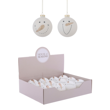 Versier je kerstboom met deze leuke kunststof ballen met sneeuwpop. Per stuk