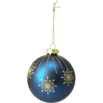 Kerstbal mix glas met glitter ster design goud licht blauw donker blauw Ø 8 cm per stuk1.49