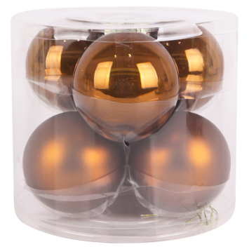 Deze kerstballen mix in de kleur koper bestaat uit 6 stuks. De kerstballen zijn gemaakt van glas. Ook verkrijgbaar in andere kleuren.