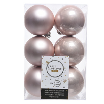 Twaalf prachtige Kerstballen plastic glans-mat. Ideaal voor in de kerstboom, de ballen gemaakt van plastic en daardoor zijn ze onbreekbaar. De kerstballen hebben een doorsnede van 6 cm en in de verpakking zitten 6 glanzende en 6 matte uitvoeringen.
