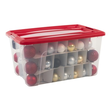 Met deze kerstballenbox ruim je gemakkelijk de kerstspullen op. De box heeft een inhoud van 45 liter en sluit af met een kliksysteem waardoor de doos goed gesloten blijft. De box wordt geleverd met een kartonnen inlay waardoor je handig al je kerstballen apart van elkaar kan opbergen.