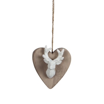 De kersthanger hertenkop wit is een houten ornament in hartvorm met een wit hertenhoofd erop. Een winters ornament dat zeker ook na de kerst kan blijven hangen. De kersthanger hertenkop heeft een afmeting van (lxbxd): 7,5x8x3,5 cm.