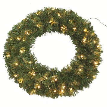 Kerstkrans Oslo met een natuurlijke groene kleur en 50 ingebouwde LED verlichting. De krans is geschikt voor binnen en buitengebruik. Kerstkrans Oslo heeft een doorsnede van 50 cm.