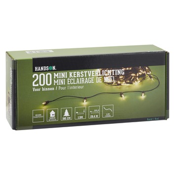 Kerstverlichting voor binnengebruik met 200 mini lampjes. De kerstverlichting is 29,36 meter lang (inclusief 1,5 meter aanloopsnoer). Deze kerstverlichting is ideaal geschikt voor bomen van 180 cm.