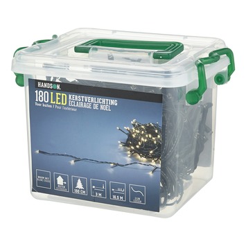 Kerstverlichting voor binnen- en buitengebruik met 180 LED lampjes. De kerstverlichting is 16,4 meter lang (inclusief 3 meter aanloopsnoer). Deze kerstverlichting is ideaal geschikt voor bomen van 180 cm en wordt geleverd in een handige opbergbox. De LED verlichting is ook verkrijgbaar in 80, 120, 240 en 320 lampjes.