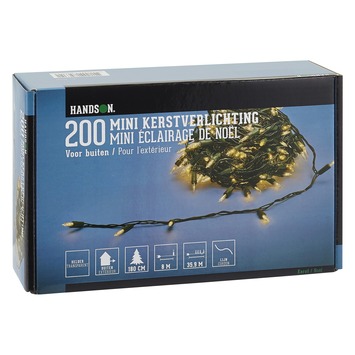 Kerstverlichting voor buitengebruik met 100 mini lampjes. De kerstverlichting is 36,86 meter lang (inclusief 8 meter aanloopsnoer).