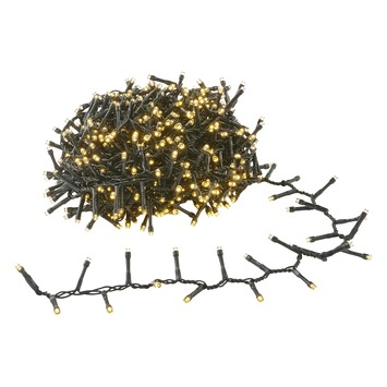 Semi-clusterverlichting voor binnen- en buitengebruik met 780 LED lampjes. De kerstverlichting is 18,6 meter lang (inclusief 3 meter aanloopsnoer) en heeft 8 standen voor verschillende lichtfuncties. Semi-clusterverlichting heeft haar lampjes dichter op elkaar op het snoer zitten dan standaard kerstverlichting, maar niet in eeen cluster zoals bij clusterverlichting. Deze kerstverlichting is ideaal geschikt voor bomen van 180 cm en wordt geleverdin een handige opbergbox. De LED verlichting is ook verkrijgbaar in 560 lampjes.
